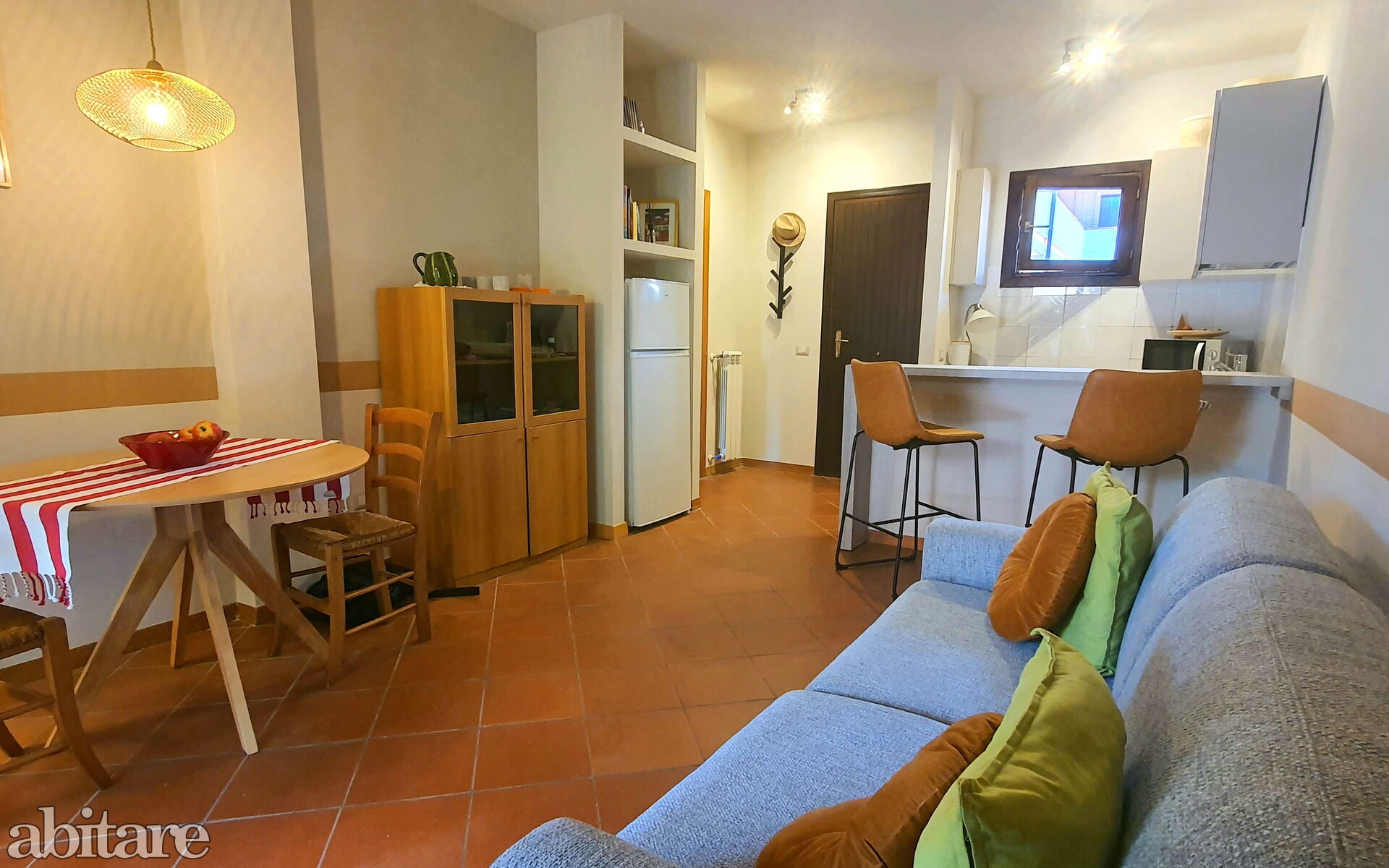 The apartment is located on the ground floor: Kitchen cum living, dining table, stove, fridge/freezer, microwave, ital. coffee brewer, washing machine, TV, 1 double bed settee, exit onto the garden. 1 double bedroom with exit onto the garden. 1 bathroom with basin, bidet, toilette, shower. Fenced garden (30 sqm) with barbeque, table and deckchairs. The apartment is equipped with mosquito nets. Parking. WiFi included.