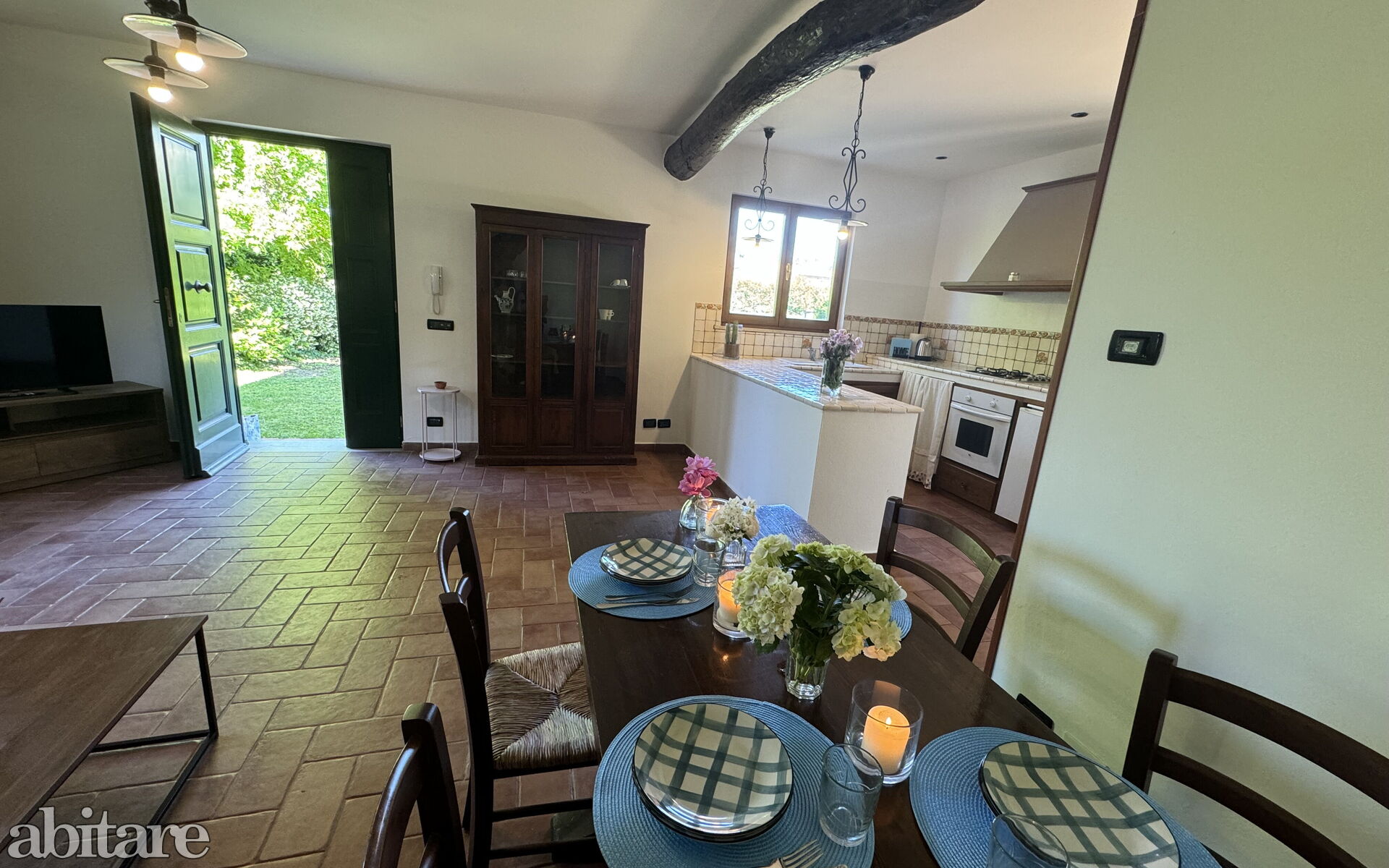 table à manger, Sortie sur le jardin, Sortie sur la véranda, Réfrigérateur, machine à café italienne, Four micro-onde, Four, Canapé, Télévision, Internet WiFi, Ventilateur portable